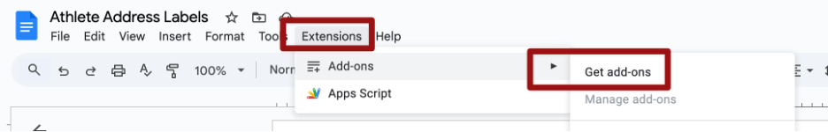 Step 3: Open a Google Doc, then select Extensions > Get Add-Ons.