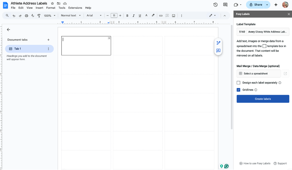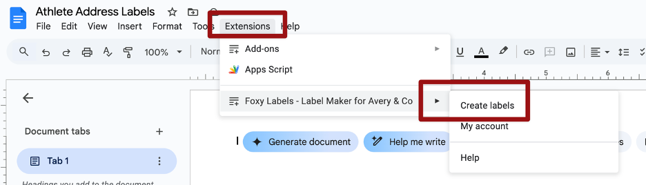 Step 4: Once you have installed the selected label creator, go back to Extensions > Label Maker > Create Labels.