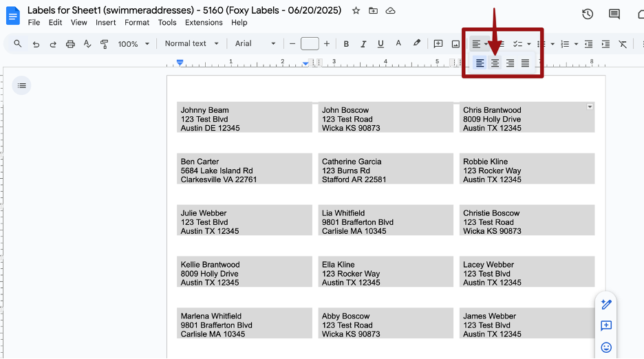 Step 9: You can now format the label however you like: center the fields, change fonts, sizes, etc.